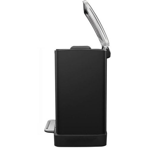 Stilig rektangulær pedalbøtte med ekstra bred pedal, innvendig plastbeholder og fuktet lokk.