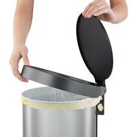 Pedalbøtte laget av rustfritt stål med fingeravtrykksikkert belegg og fuktet plastlokk.
