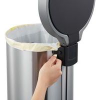 Inneholder ikke innerbeholder, gir ekstra stor kapasitet og takket være den brede kanten og innebygd søppelsekkfikser holder søppelposen seg på plass og ute av syne.