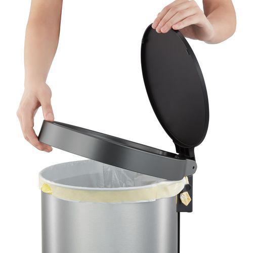 Ved å plassere felgen oppover forblir lokket åpent og søppelbøtta kan enkelt rengjøres eller søppelsekken kan skiftes.