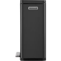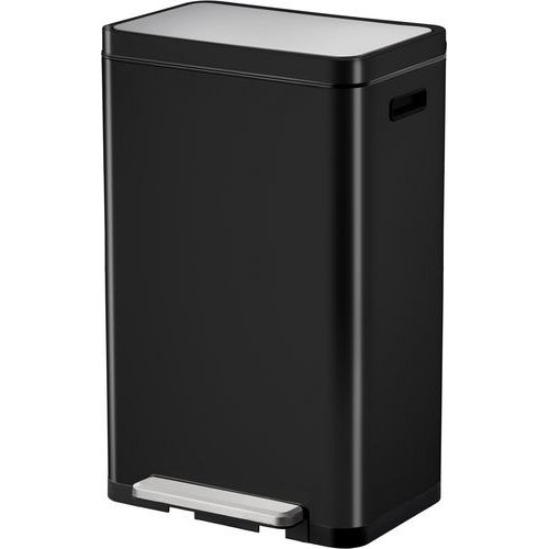 Stilig rektangulær pedalbøtte med ekstra bred pedal, innerbøtte i plast, mykt lukkende lokk og holde-åpen funksjon.