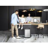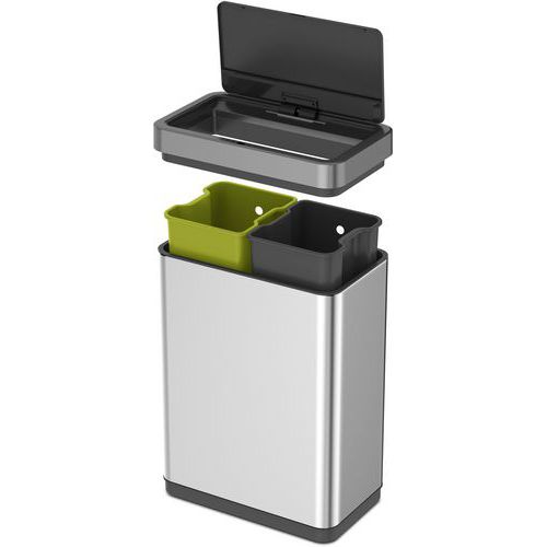 Avfallsbeholder i rustfritt stål med fingeravtrykksikkert belegg og to innvendige plastbøtter (20 + 20 liter).