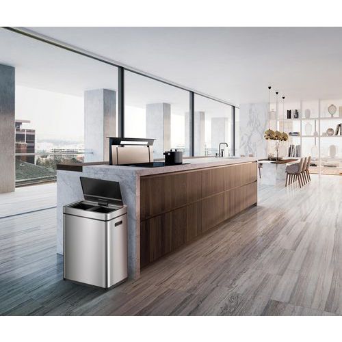 En stilig sensoravfallsbeholder for avfallsseparering av børstet rustfritt stål med fingeravtrykksikkert belegg.