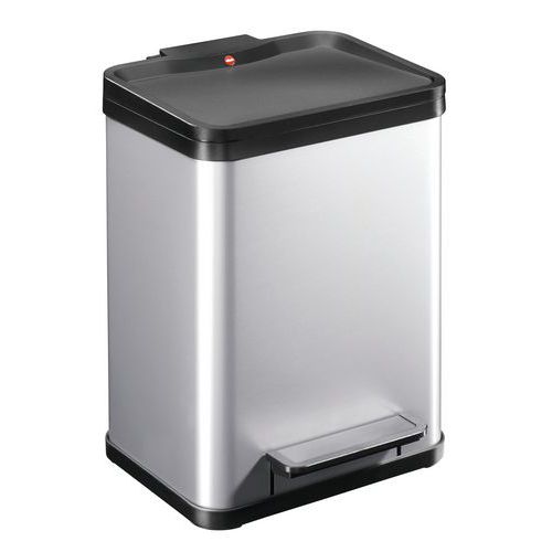 - Rektangulær avfallsbeholder med pedal og plastlokk, sort, utstyrt med lydløs lukking.