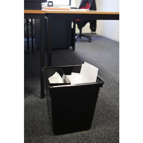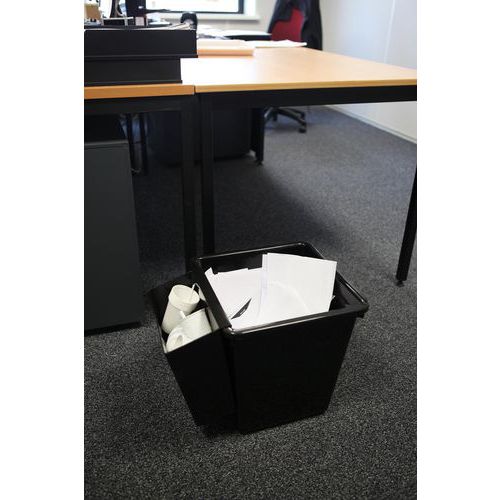 Papirkurven kan stables takket være den kvadratiske formen. Overflate av plast som er veldig lett å rengjøre.