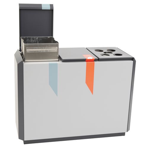 | Varenavn | Papirkurv RecycloStar 3 beholder med kopplokk Vepabins, Volum: 165 L, Åpning: Spor, Materiale: Metall |