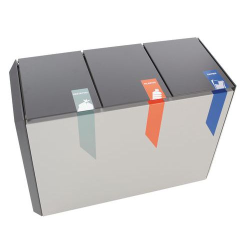 | Varenavn | Papirkurv RecycloStar 3 Vepabins, Volum: 165 L, Åpning: Spor, Materiale: Metall, Søppelkasse |
