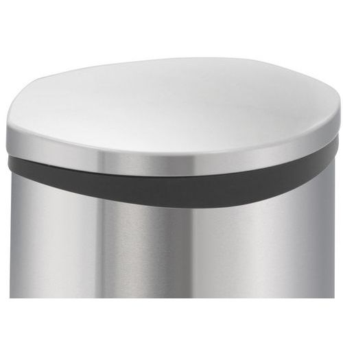 Iøynefallende skallformet pedalbeholder med fuktet lokk og innerbeholder i plast. Fingeravtrykksikker.