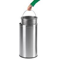 Søppelbøtte med skyvelokk og innerbøtte i metall.