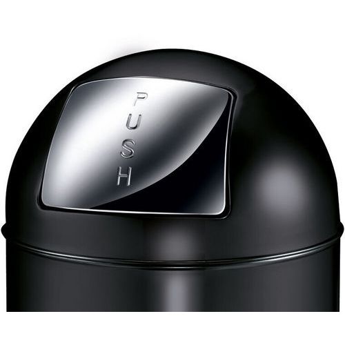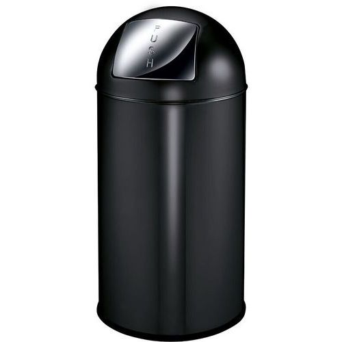 Søppelbøtte med skyvelokk og innerbøtte i metall.