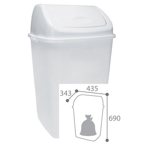 Papirkurv vippelokk hvit, Volum: 50 L, Søppelkasse, volum (Spekter): Mellomstor (11 - 90 L), Farge: Hvit