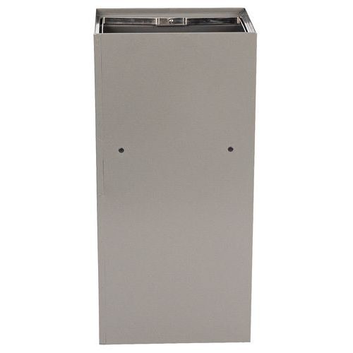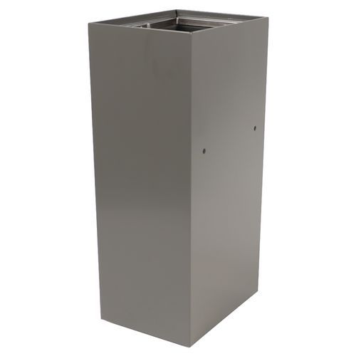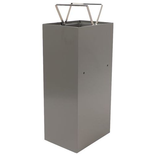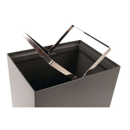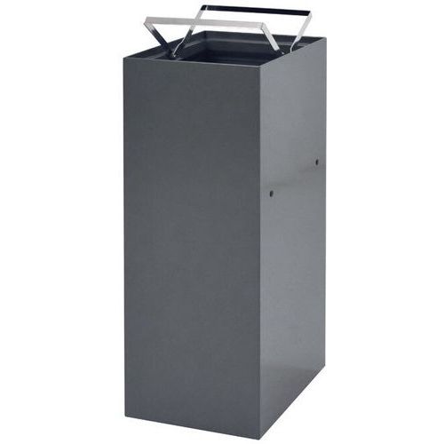 Modulær, svært solid søppelbøtte i pulverlakkert stål, utstyrt med poseholder og justerbare føtter.