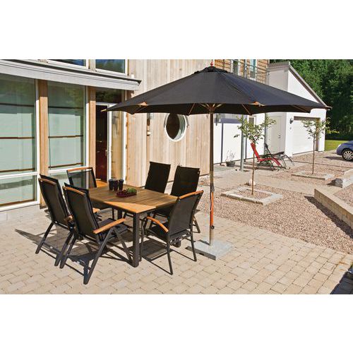 | Varenavn | Parasoll 335 tre/polyester, Form: Rund, Farge: Svart, Vekt: 12 kg, Ø: 335 cm, Høyde: 275 cm |