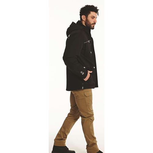 - 3 påsydde lommer med klaff: 2 i midjen og 1 på brystet.