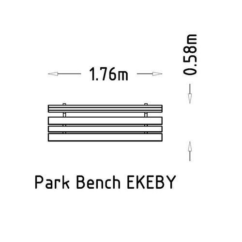 | Varenavn | Parkbenk Ekeby, for plassstøping, Sete, materiale: Furu, Type sete: Utebenk, Lengde: 176 cm, Dybde: 58 cm |