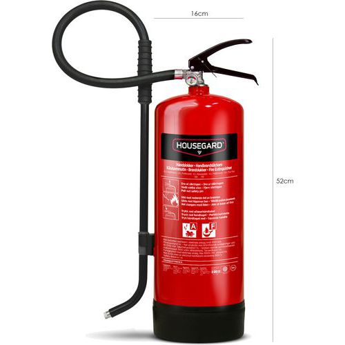 | Varenavn | PFAS-fri fettbrannslukker, 6 liter, Rød, Totalvekt: 9.5 kg, Modell: Skum, Rekkevidde: 2 m |
