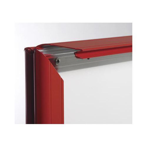 Smart konstruksjon som forenkler bytte av plakat. Fjærbelastet ramme åpnes som et lokk og fjærmekanismen holder plasten stabilt på plass. Rammebredde 44 mm. Beskyttelsesplast inngår. Monteres enklest med skruer (ikke inkl.). For innendørs-/utendørs bruk.