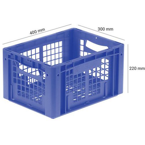 Plastbakk blå perforert 19-24 l, Volum: 19 L, Kan stables: ja, Totalhøyde: 220 mm, Totalbredde: 300 mm