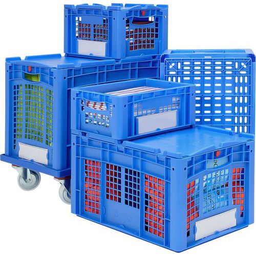 Kasse som kan stables med andre kasser og paller av europastandard.
