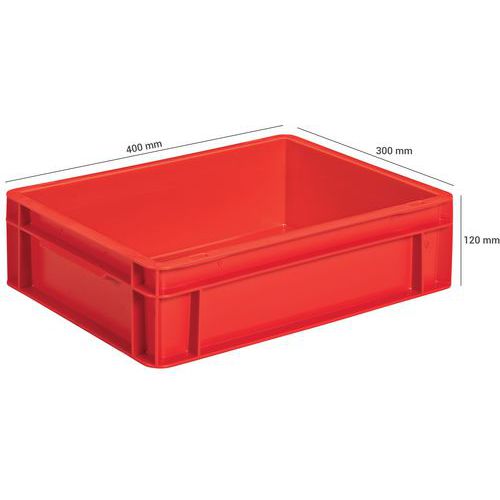 Formfast selv ved dårlig fordelt last og slag. Forsterket struktur som gir stor stabilitet ved stabling. Kasse av europeisk standard med rette hjørner som gir optimalt innvendig volum. Enkel å transportere med lukkede håndtak. Tåler oljer, fett, salt, syrer og rengjøringsmidler. Produsert i EU Garanti (år) : 3 år Maksimal last (kg) : 20 kg