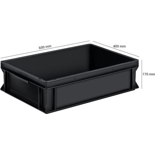 Plastbakk Europe ESD 14-60 l, Volum: 30 L, Kan stables: ja, Totalhøyde: 170 mm, Totalbredde: 400 mm Plastbakk Europe ESD 14-60 l, Volum: 30 L, Kan stables: ja, Totalhøyde: 170 mm, Totalbredde: 400 mm