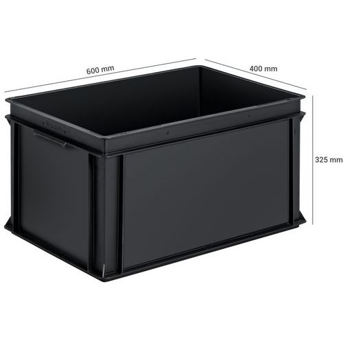 Ledende material gjør at den tåler elektrostatiske utladninger. Meget god motstand mot slag og annen mekanisk deformasjon. Antistatisk kasse med europeiske standardmål for enkel lasting. Beskytt sensitive elektroniske komponenter.