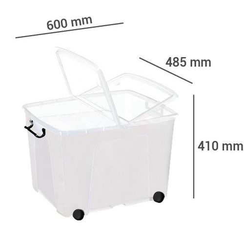 | Varenavn | Plastbokser CEP Strata med bøyle og hjul, Volum: 75 L, Totalhøyde: 410 mm, Totalbredde: 485 mm |