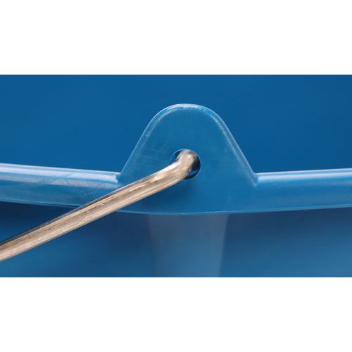 Med metallhåndtak for industriell bruk. Bruk den blå bøtten til rent vann og den røde til skittent vann.