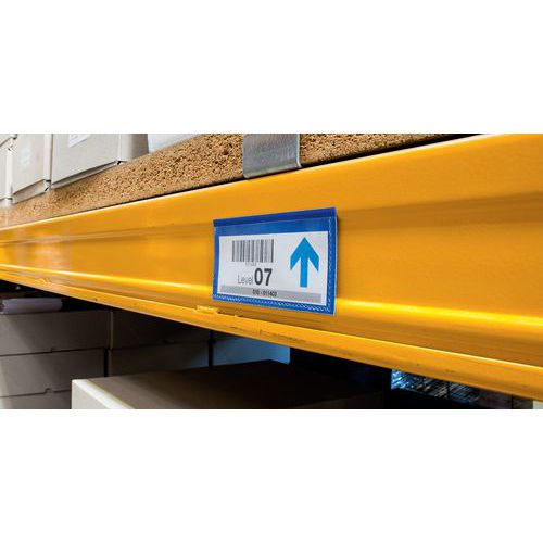 Med tydelig og oversiktlig merking av hyller, skap , dører, containere og andre rom kan man forbedre og effektivisere arbeidsprosessen i lager- og produksjonsanlegg. De magnetiske plastlommene/etikettholderne i slitesterk polypropylen kan leses med skanner og beskytter de utskiftbare innleggene mot smuss. To magnetremser på baksiden gjør at lommen sitter godt på plass. Produsert i Tyskland