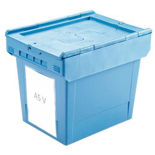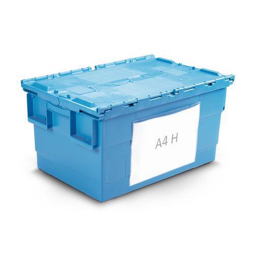 Optimal beskyttelse av dokumenter. Selvklebende bakside gjør at den er enkel å feste opp. Enkel merking av kasser. Tilbehør til Plastboks klafflokk Universal. Produsert i Storbritannia