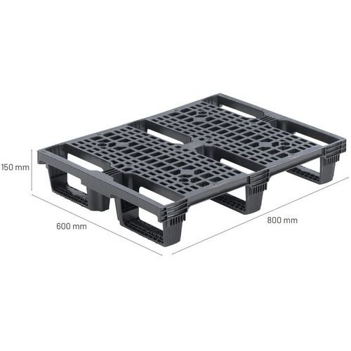 | Varenavn | Plastpall resirkulerbar, Maksimal statisk last: 800 kg, Antall åpninger: 4, Bredde: 600 mm, Lengder: 800 mm |