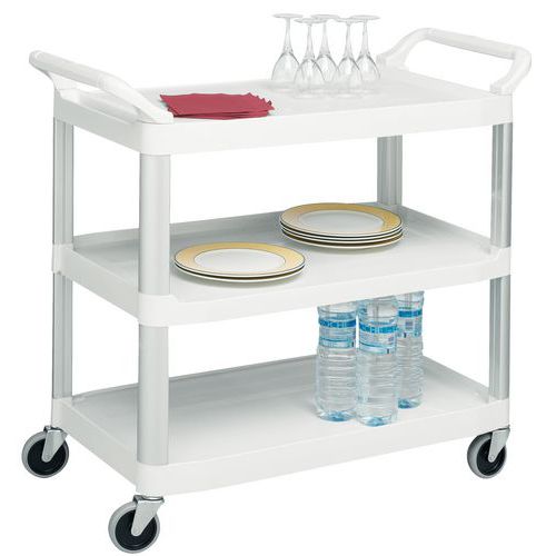 | Varenavn | Plastvogn med 3 hyller –lastekapasitet 135 kg, Kapasitet: 135 kg, Totalhøyde: 960 mm, Totalbredde: 508 mm |