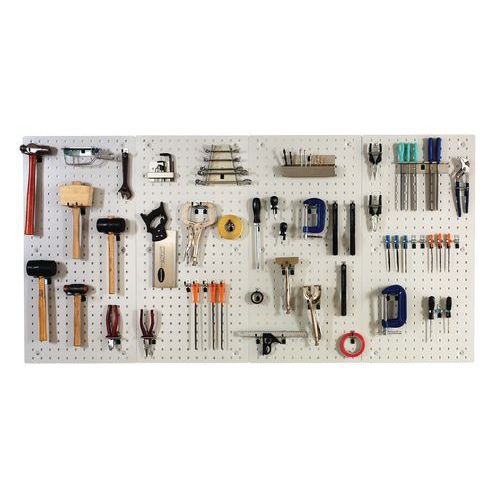 | Varenavn | Plate og kroker Perfo Light, Farge: Grå, Panel, bredde: 500 mm, Panel, høyde: 1000 mm, Antall paneler: 4 |