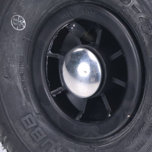 - Utstyrt med luftgummihjul som gir jevn og stabil kjøring selv på ujevnt underlag.