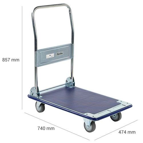 | Varenavn | Plattformvogn 200 kg med nedslagbar bøyle, Kapasitet: 200 kg, Totalhøyde: 857 mm, Totalbredde: 474 mm |