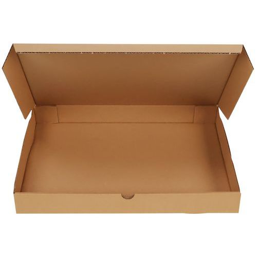 Sterk transporteske fremstilt av havanafarget kraftplate. Konstruksjon spesifikt tilpasset flate artikler.