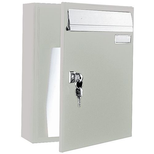 - Enkel, elegant postkasse laget av galvanisert stål med innløpsåpning under klaffen (inntak: 32,5 x 3,3 cm).