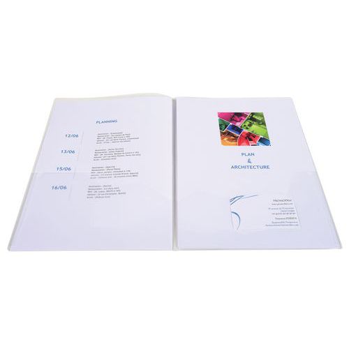 | Varenavn | Presentasjonsmappe med dobbelt lomme, Kapasitet (antall kort): 100, Materiale: Polypropylen |