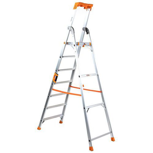 Profesjonell trappestige i aluminium, Tilgangshøyde: 3.6 m, Plattform, høyde: 1.606 m, Antal trin: 7 Profesjonell trappestige i aluminium, Tilgangshøyde: 3.6 m, Plattform, høyde: 1.606 m, Antal trin: 7