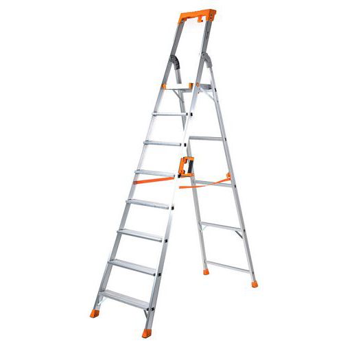 Profesjonell trappestige i aluminium, Tilgangshøyde: 3.84 m, Plattform, høyde: 1.841 m, Antal trin: 8 Profesjonell trappestige i aluminium, Tilgangshøyde: 3.84 m, Plattform, høyde: 1.841 m, Antal trin: 8