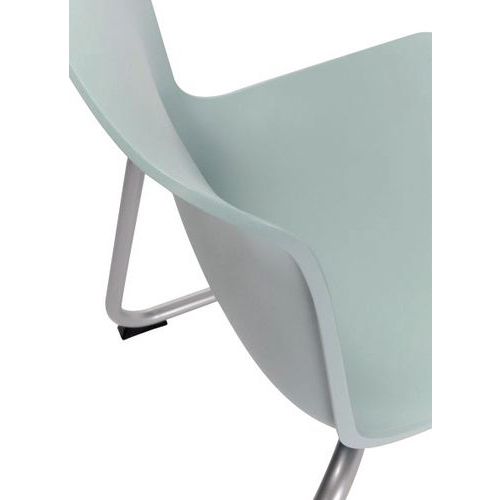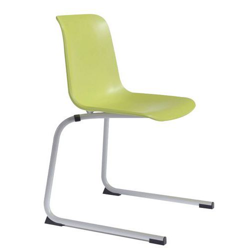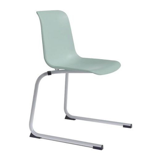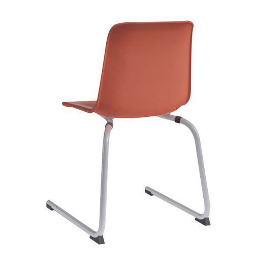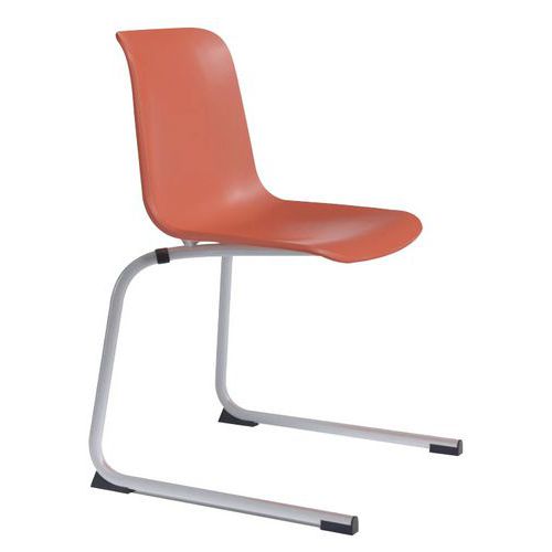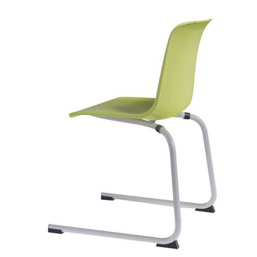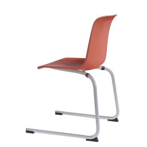 Stol med to L-formede ben. Bena er støttet for ekstra stabilitet. Behagelig ryggstøtte.