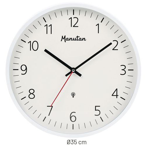 | Varenavn | Radiostyrt analog veggklokke Ø 35 cm, Klokkevisning: Analog (nål), Form: Rund, Farge: Hvit, Bredde: 35 cm |