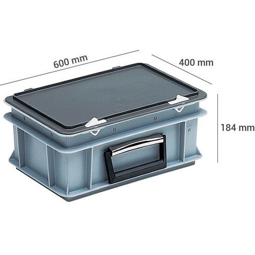 Tett lokk med selvlåsende fjærer som gir bedre sikkerhet Kan stables, plassbesparende kasse.