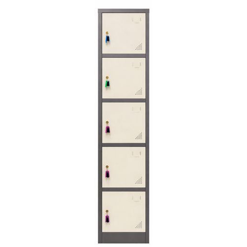 | Varenavn | Rekonditionert skap 5 dører på sokkel, Type skap: Med rom og plass til klær, Materiale: Stål |
