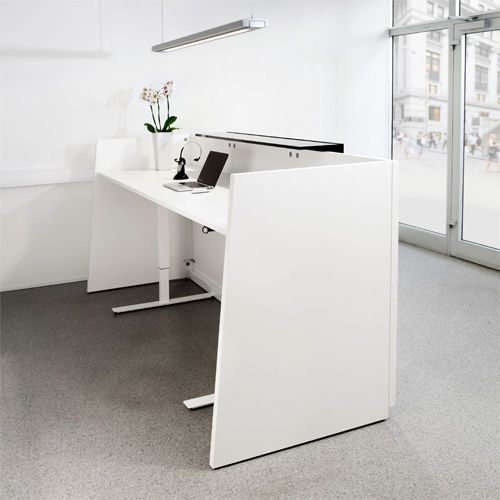 Resepsjonsdisken Libra er en flott resepsjonsdisk i hvit laminat med sort topp, og passer godt inn i de fleste lokaler. Med sitt enkle, men klassiske uttrykk blir dine gjester ønsket varmt velkommen, samtidig som de som jobber i mottakelsen får en skikkelig arbeidsplass. Resepsjonen tilbys i 2 varianter, en hvor arbeidsbordet er fastmontert med arbeidshøyde 730mm. For det andre alternativ har det innvendige arbeidsbordet et flott el. heve-senke understell med arbeidshøyde 700-1170mm. Begge varianter tilbys dessuten i 2 forskjellige bredder.