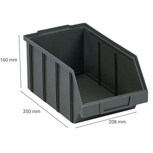 Praktisk oppbevaringsboks for lagring av diverse utstyr. Laget av resirkulert polypropylen. Motstandsdyktig mot temperaturvariasjoner. Praktisk gripehåndtak på forsiden. Målene på etikettfeste for 1L-bakken er 52x20mm. Målene på etikettfeste for 3,5L-bakken er 76x25mm. Målene på etikettfeste for 10L- og 30L-bakker er 100x30mm.