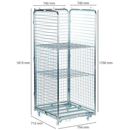 | Varenavn | Rullecontainer tresidet, 2 hyller, kapasitet 400 kg, Kapasitet: 400 kg, Totalhøyde: 1815 mm |