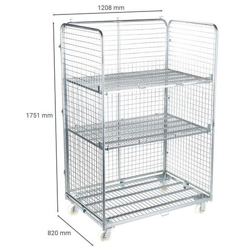 | Varenavn | Rullecontainer tresidig – 2 hyller – kapasitet 600 kg, Kapasitet: 600 kg, Totalhøyde: 1751 mm |