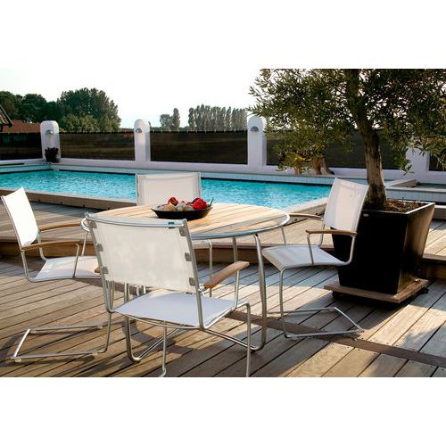| Varenavn | Rundt bord Spring Ø 120 cm av massivt ståltråd og teak, Totallengde: 120 cm, Form: Rund, Plate |