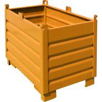 SBS-bokser for sortering og transport av avfall. Stabil stålkonstruksjon, 3 mm - forflyttes med gaffeltruck eller løfteører - Ulike størrelser kan stables oppå hverandre (maks. 3 stk.) Velg mellom oransje, gul, blå, grønn eller grå. Fås også i varmgalvanisert utførelse. Maksimal last (kg) : 2250